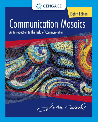 COMMUNICATION MOSAICS: AN INTRODUCTION TO THE FIELD OF COMMUNICATION, 8E draws from the most up-to-date research, theories, and technological information to provide both an overview of the field and practical applications you can immediately use to improve your personal, professional, and public communication skills. Extremely student friendly, the text combines the author's signature first-person narrative style with popular student commentaries. It introduces the basic processes and skills central to all communication contexts and then explains how these aspects of communication are applied in specific contexts such as interpersonal and public speaking. New coverage in Chapter 13 walks you step-by-step through the process of planning and preparing a public speech. As you progress through the text, each chapter ends with a case study enabling you to put what you learn into practice.