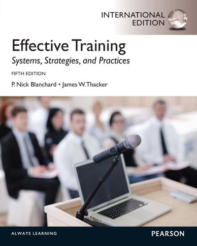 For students in training courses and practitioners interested in developing training programs. Seamlessly integrate training theory and application into your course. Effective Training: Systems, Strategies and Practices discusses the training process within an overarching framework that shows readers how training activities meet organizational needs that are both strategic and tactical in nature. The full text downloaded to your computer With eBooks you can: search for key concepts, words and phrases make highlights and notes as you study share your notes with friends eBooks are downloaded to your computer and accessible either offline through the Bookshelf (available as a free download), available online and also via the iPad and Android apps. Upon purchase, you'll gain instant access to this eBook. Time limit The eBooks products do not have an expiry date. You will continue to access your digital ebook products whilst you have your Bookshelf installed.