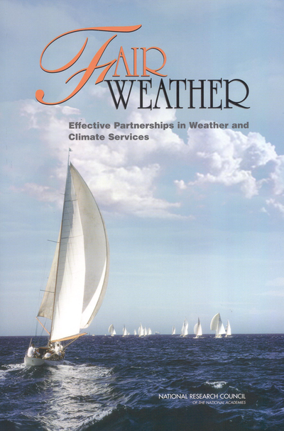 <p>Decades of evolving U.S. policy have led to three sectors providing weather services?NOAA (primarily the National Weather Service [NWS]), academic institutions, and private companies. This three-sector system has produced a scope and diversity of weather services in the United States second to none. However, rapid scientific and technological change is changing the capabilities of the sectors and creating occasional friction. <i>Fair Weather: Effective Partnerships in Weather and Climate Services</i> examines the roles of the three sectors in providing weather and climate services, the barriers to interaction among the sectors, and the impact of scientific and technological advances on the weather enterprise. Readers from all three sectors will be interested in the analysis and recommendations provided in <i>Fair Weather</i>.</p>