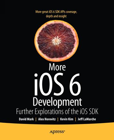 Interested in iPhone and iPad apps development? Want to learn more? Whether you’re a self-taught iPhone and iPad apps development genius or have just made your way through the pages of Beginning iOS 6 Development, we have the perfect book for you. More iOS 6 Development: Further Explorations of the iOS SDK digs deeper into Apple’s latest iOS 6 SDK. Bestselling authors Dave Mark, Alex Horovitz, Kevin Kim and Jeff LaMarche explain concepts as only they can—covering topics like Core Data, peer-to-peer networking using GameKit and network streams, working with data from the web, MapKit, in-application e-mail, and more. All the concepts and APIs are clearly presented with code snippets you can customize and use, as you like, in your own apps. If you are going to write a professional iPhone or iPad app, you’ll want to get your arms around Core Data, and there’s no better place to do so than in the pages of this book. The book continues right where Beginning iOS 6 Development leaves off, with a series of chapters devoted to Core Data, the standard for Apple persistence. Dave, Alex, Kevin and Jeff carefully step through each Core Data concept and show techniques and tips specifically for writing larger apps—offering a breadth of coverage you won't find anywhere else. The Core Data coverage alone is worth the price of admission. But there's so much more! More iOS 6 Development covers a variety of networking mechanisms, from GameKit’s relatively simple BlueTooth peer-to-peer model, to the addition of Bonjour discovery and network streams, through the complexity of accessing files via the web. Dave, Alex, Kevin, and Jeff will also take you through coverage of concurrent programming and some advanced techniques for debugging your applications. The enhanced multitasking, threading, memory management and more are important. Apps are getting more and more complex, including sophisticated game apps that offer virtual or augmented reality experiences and new mapping views that take advantage of sensors and other APIs in the newest iOS 6 SDK. Whether you are a relative newcomer to iPhone and iPad or iOS development or an old hand looking to expand your horizons, there’s something for everyone in More iOS 6 Development.